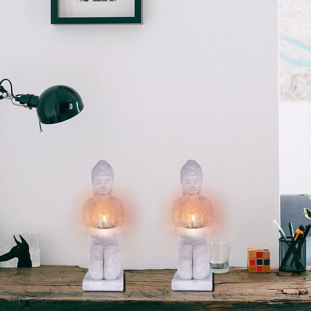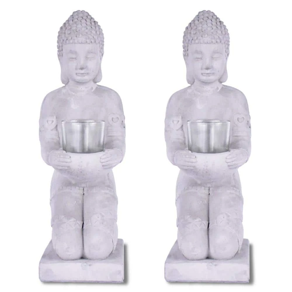 KANTE 12.8 in. H Gray Cement Buddha Garden Statue Tealight Candle Holder Ornament (2-Pack)