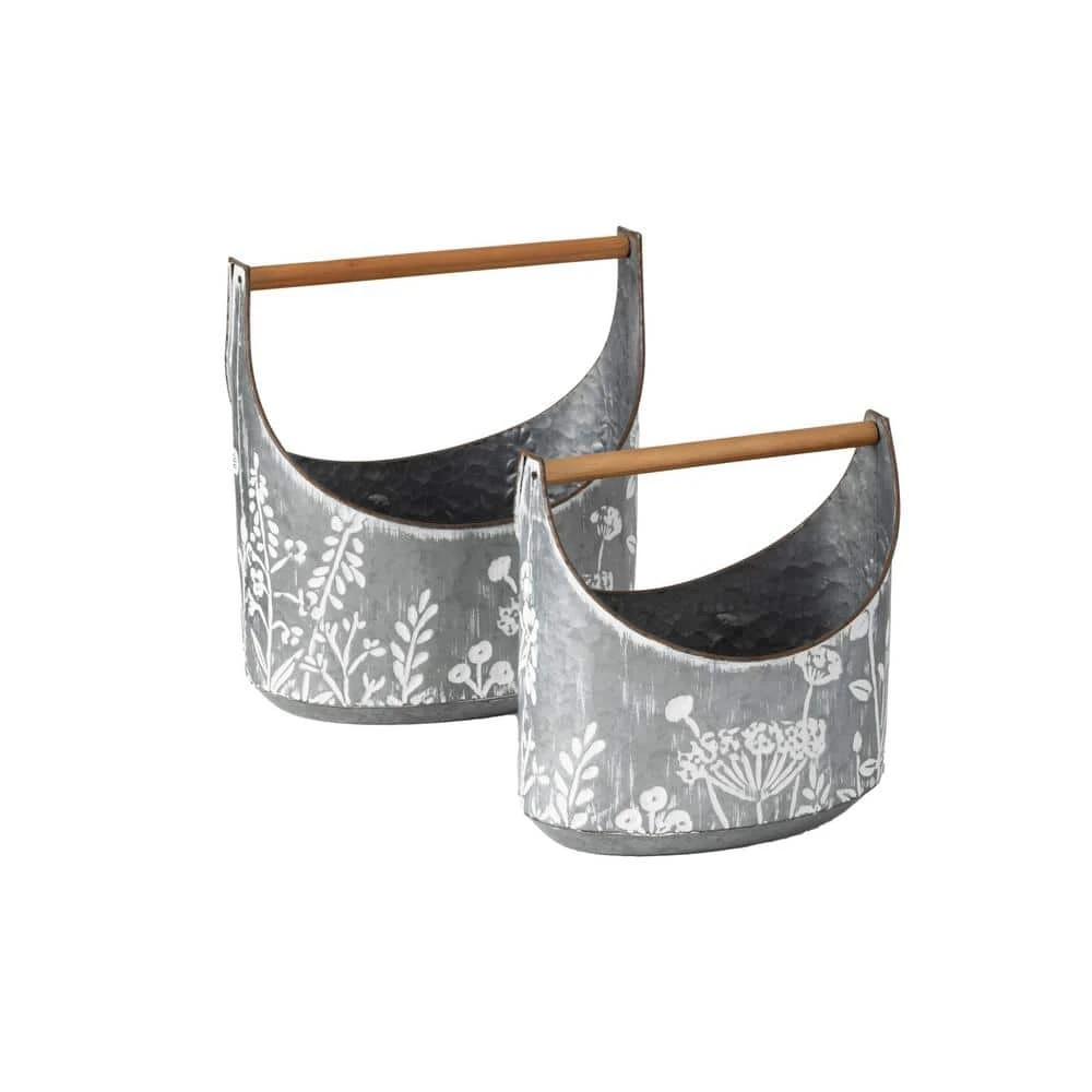 SULLIVANS Whitewashed Metal Flower Trug With Handles (Set of 2) -Vigoro sales Store whitewashed sullivans plant pots met1699 4f 1000