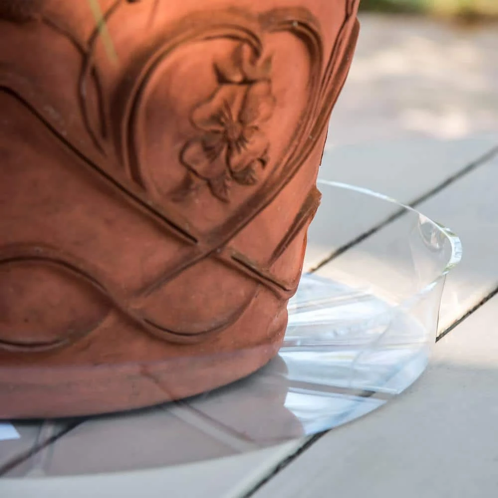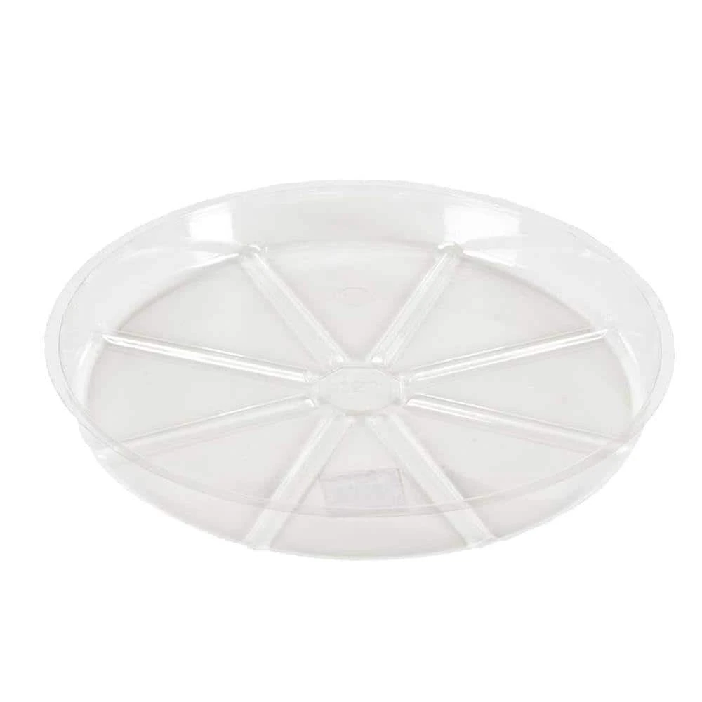 Keep your floors, carpets, furniture and decks protected from dirt or water stains with the help of the Plastic Plant Saucer from Vigoro. The clean symmetrical shape of this plant tray is sure to blend in seamlessly with your stylish home or patio decor. Made from weather resistant clear plastic, this saucer works indoors and outdoors and is ideal for plants that sit in decorative pots. This drip tray is designed to catch any excess water from your plants. The plastic construction prevents leaks and damage to your surfaces.