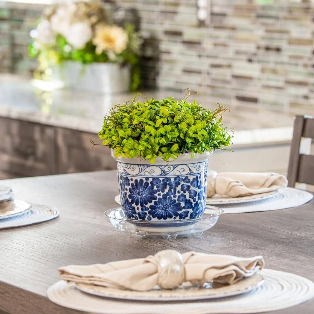 Protect your floors, furniture and decks from dirt and water stains with the clear Heavy Duty Plant Saucer from Vigoro. The raised patterned bottom of this plant tray will not only catch excess water, but also allow air to circulate underneath for healthier plants. Made from extra durable weatherproof plastic, these premium plant saucers are long lasting. They are perfect for both indoor and outdoor use and are ideal for plants sitting in decorative pots. The clear construction of this drip tray allows for versatile placement around the home, keeping plant maintenance easy while ensuring the integrity of your decor.